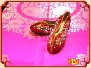 棗紅車繡古式鞋